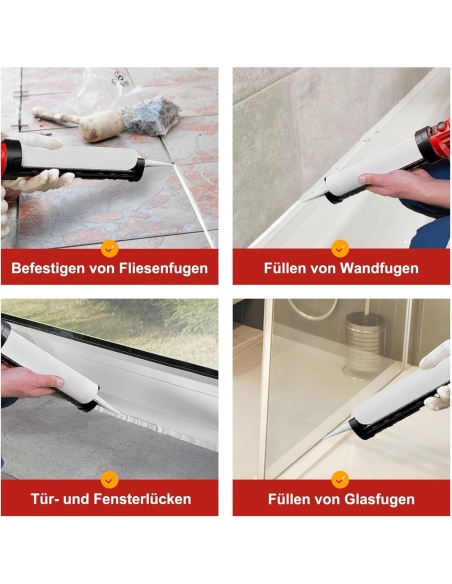 - Controllo libero della velocità dell'adesivo: la pistola per calafataggio motorizzata offre la flessibilità di regolare la velocità di spinta tra 0 e 95 mm/min. Il grilletto variabile consente un controllo preciso della portata, in modo da poter scegliere la portata giusta per diverse esigenze e controllare meglio il flusso dell'adesivo.