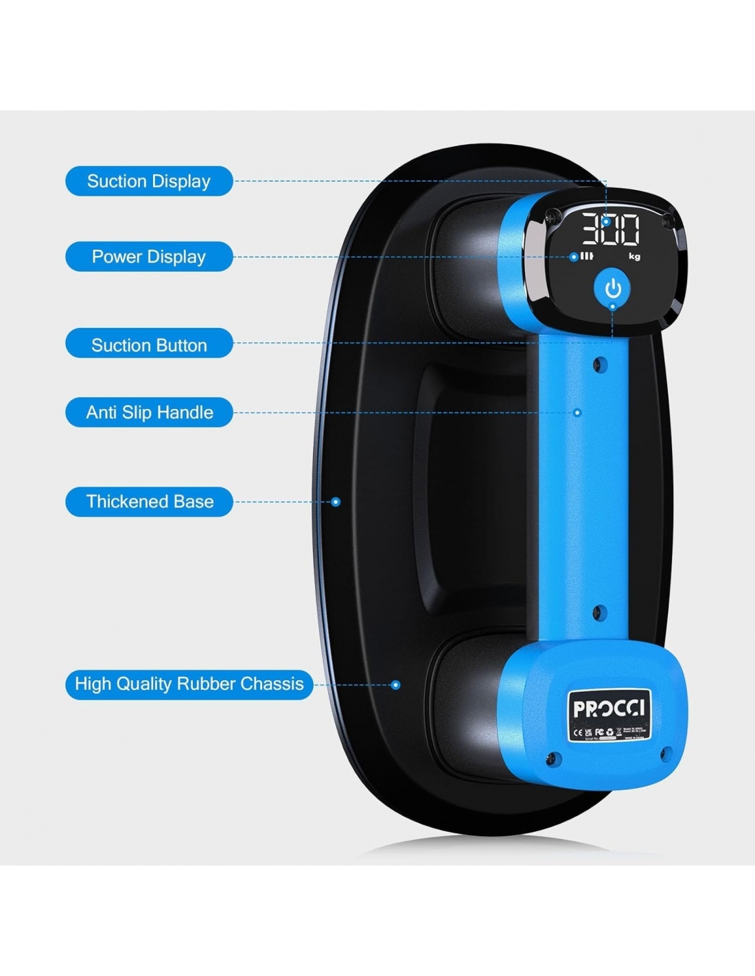 PROCCI XP035 Ventosa a Batteria per Piastrelle, Vetro e Marmo – 2 Motori, 300KG di Aspirazione, Display LCD, Batteria 4500mAh, Autonomia 12h, 26cm, anche per Superfici Leggermente Strutturate