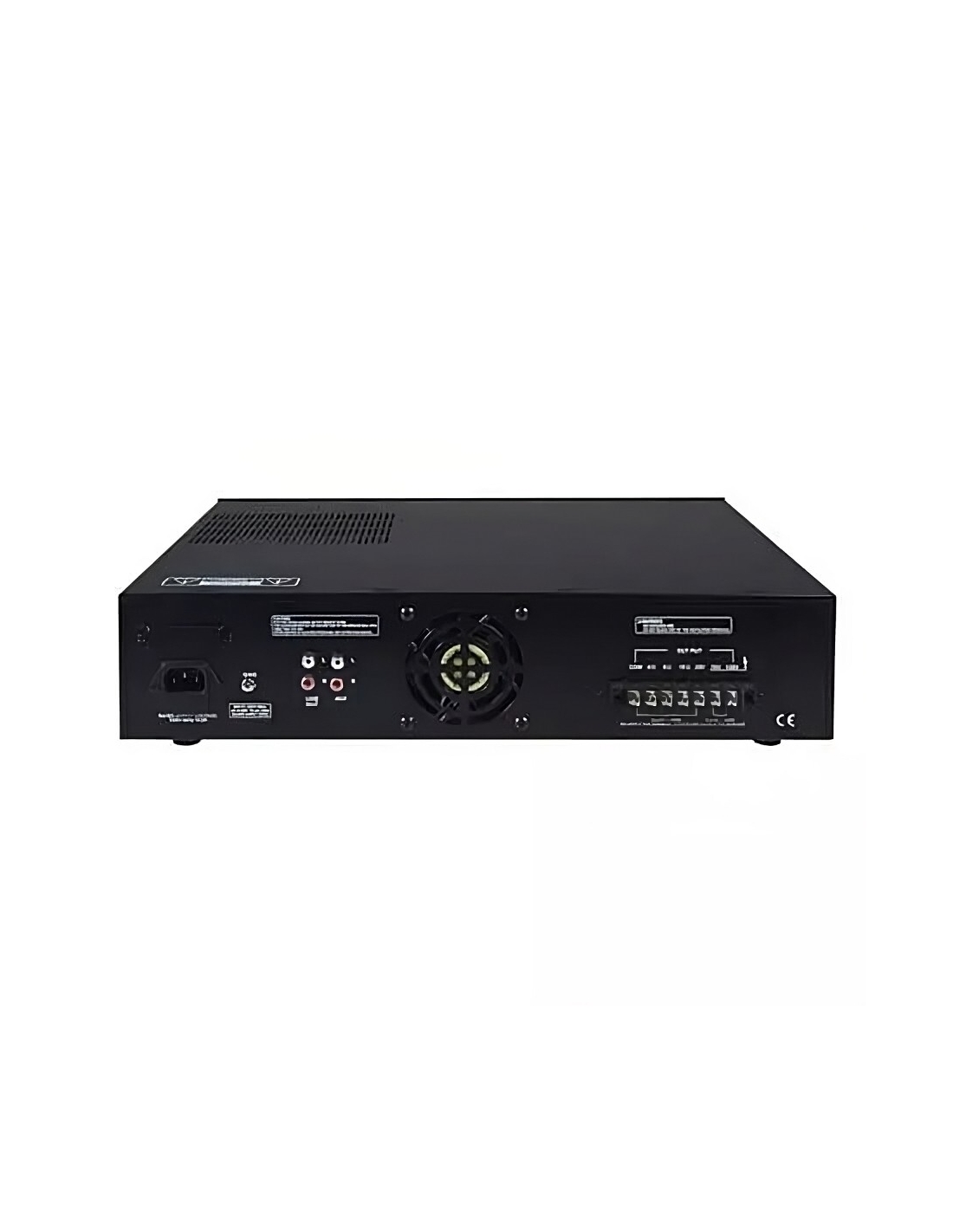 [Risposta in frequenza: 50 Hz – 15 KHz][Distorsione Armonica Totale (THD): < 1% @ 1000 Hz, piena potenza RMS][Rapporto Segnale/Rumore: 80 dB][Alimentazione: 115 V A.C. o 230 V A.C.][Dimensioni (L x A x P): 450 – 100 – 335][Peso:12.35 kg ][Uscite a impedenza costante: 4 ohm, 8 ohm, 16 ohm][Uscite a tensione costante: 25 V / 70 V / 100 V][Connettori di ingresso: MIC1 – MIC3: jack 6.3 mm 600 ohm sbilanc.