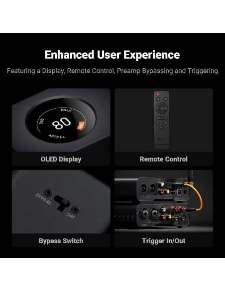 - Facilità d'uso: lo ZD3 adotta un display OLED da 1,5 pollici, un telecomando, un interruttore di bypass del preamplificatore e interfacce di ingresso/uscita a 12 V, che consentono l'accensione e lo spegnimento sincronizzati con altri dispositivi audio domestici, il tutto per una buona esperienza d'uso.