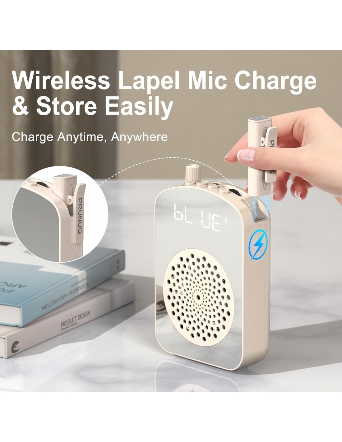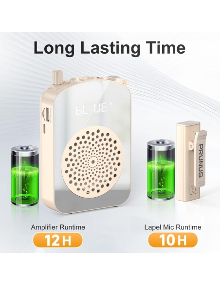 PRUNUS A10 Amplificatore vocale wireless con microfono lavalier, ricarica e archiviazione, amplificatore vocale portatile con microfono e altoparlante Laple, mini amplificatore vocale per aula, discorso, formazione all'aperto
