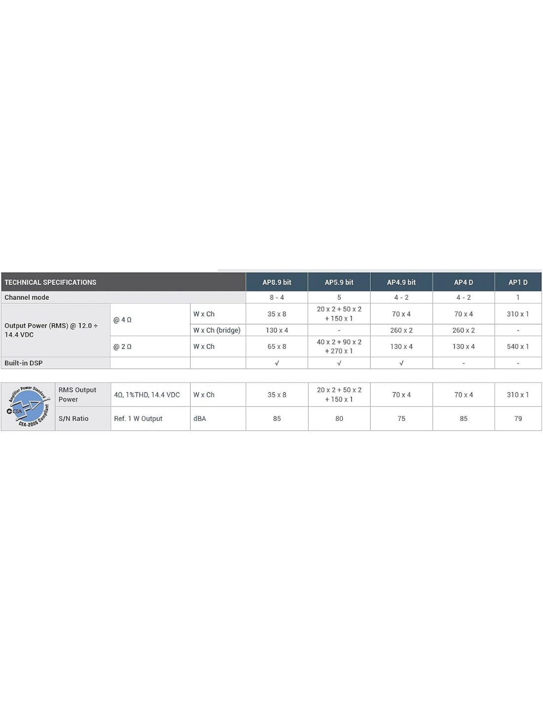 AP1 D è stabile a 2Ohm e in grado di fornire 540W di potenza.