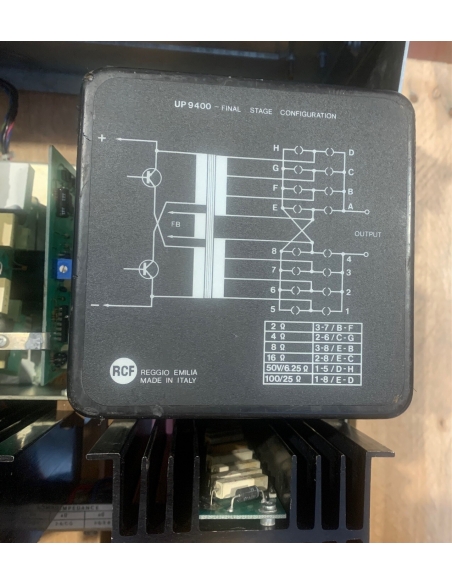 Amplificatore RCF UP 9400 potenza 400W a trasformatore di uscita 8 ohm e 4 ohm, linea a 100volt con prese anche a 70 volt, 50 volt, non funzionante e/o per pezzi di ricambio.