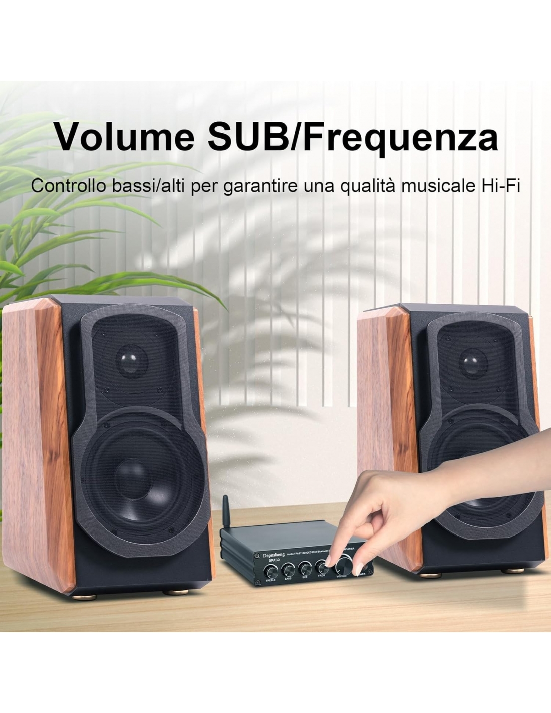 - Controllo dei bassi e degli alti: puoi controllare il suono dei tuoi altoparlanti da scaffale tramite software musicali o video, regolando con precisione i bassi e gli alti in base alle tue preferenze.