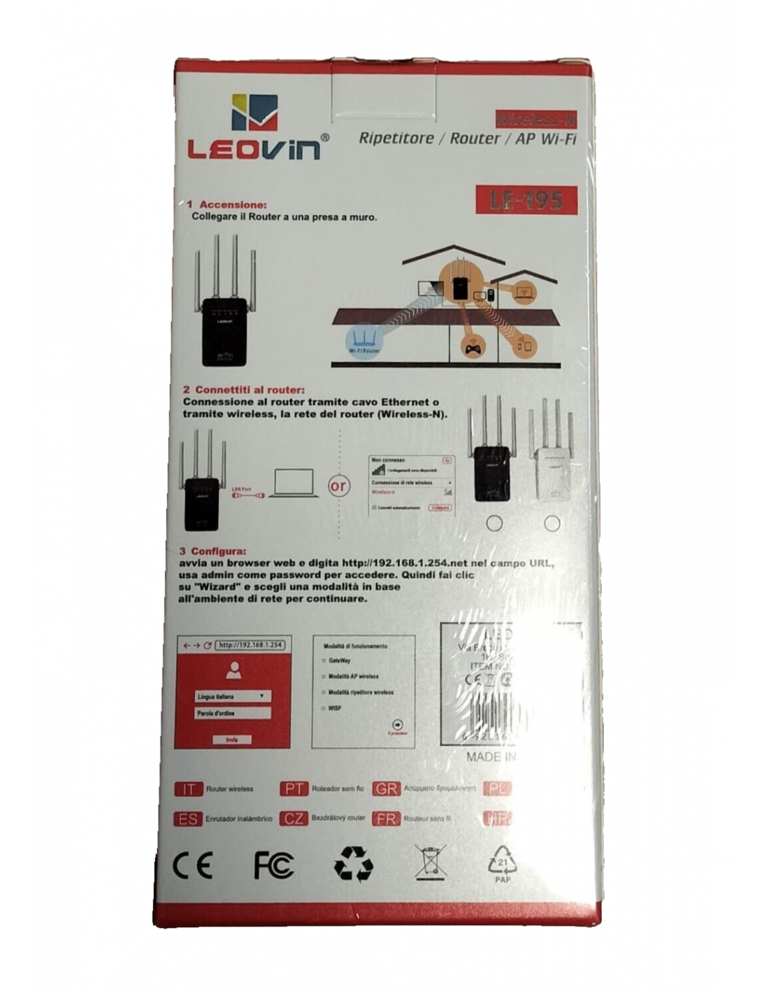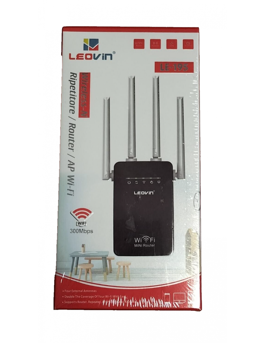 Leovin LE-195 Ripetitore di Segnale Wireless Modem AccessPoint 4 Antenne 300mbps