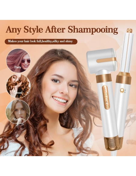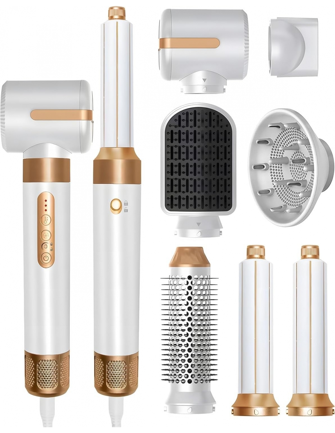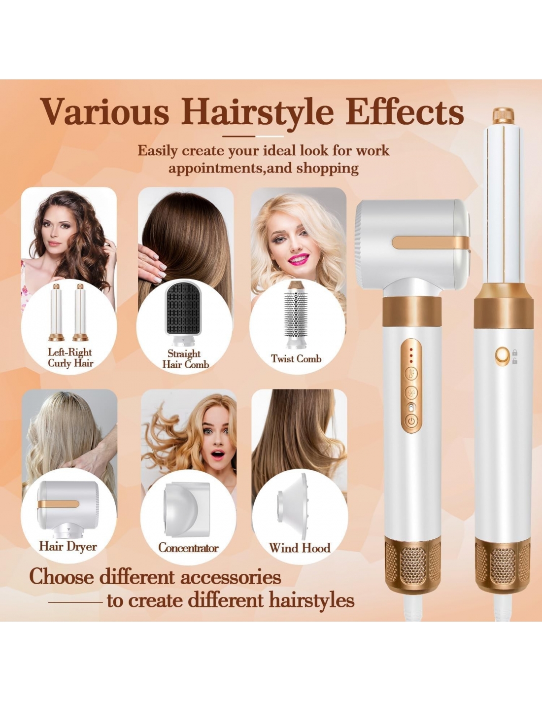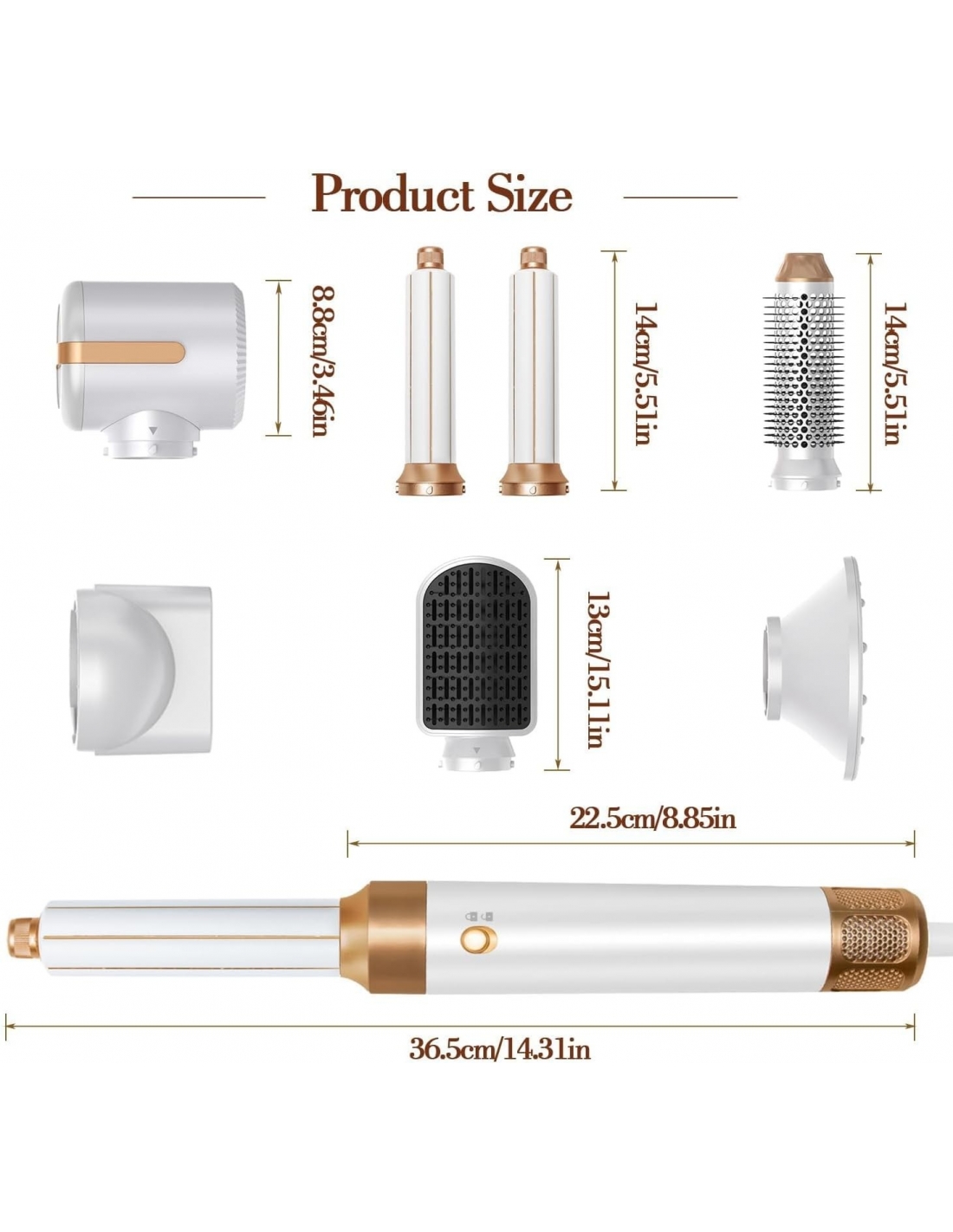 - 【Insieme Asciugacapelli 7-IN-1】 Questo versatile set per capelli include sette accessori distinti. Offre un asciugacapelli, una spazzola ad aria calda, un pettine rotondo, un arricciacapelli ad avvolgimento automatico, un volumizzatore e un concentratore, per una creazione di stile semplice e un risparmio di tempo. Adatto a molteplici acconciature, sia per donne che per uomini.