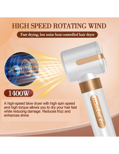 - 【Nuova Tecnologia di Riscaldamento Rapido 2023 e Asciugatura Veloce】 L'asciugacapelli ha una potenza di 1400 watt, una tecnologia di riscaldamento rapido avanzata ed è dotato di un potente motore brushless ad alta velocità da 110.000 RPM, con una velocità del vento fino a 20 m/s, consentendo ai tuoi capelli di asciugarsi rapidamente mantenendo una bassa emissione di calore, garantendo che rimangano lisci e voluminosi.