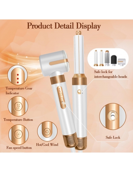 - 【Sicuro da Usare】 Questo Multi-Styler utilizza lo standard di tensione USA da 110 V, spina di sicurezza ALCI con protezione dalle perdite e funzione di spegnimento automatico, in linea con i requisiti di sicurezza degli Stati Uniti; Il filo di rotazione professionale a 360° non si annoda, comodo e sicuro; questo essiccatore adotta accessori in materiale resistente alle alte temperature, design di protezione dal calore aggiornato per offrire un'esperienza di utilizzo confortevole e intima.