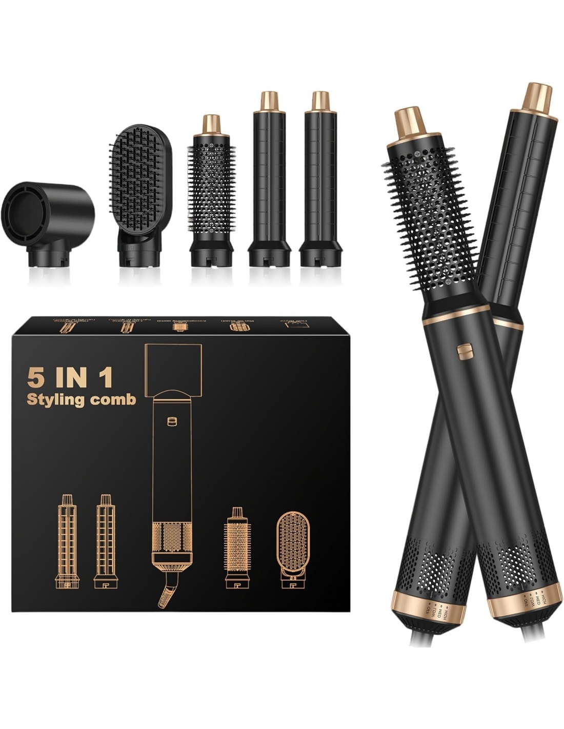Air Styler WT-638 Airbrush 5 in 1, spazzola soffiante Airwrap Asciugacapelli Mulit Air Brush Set, Black Gold Hair Loop Automatico 3 Vento-Temperatura (asciugatura, ricciolo, liscia)