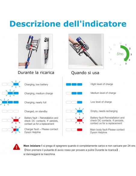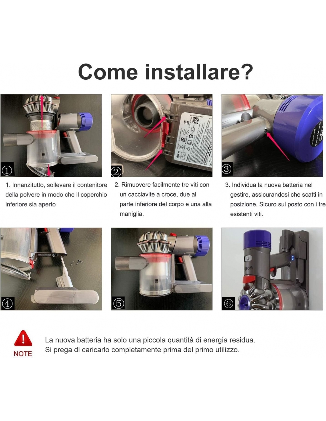 Batteria per Dyson V8 6000mAh 129,6 Wh 21,6V Ricambio V8 NO ACCESSORI