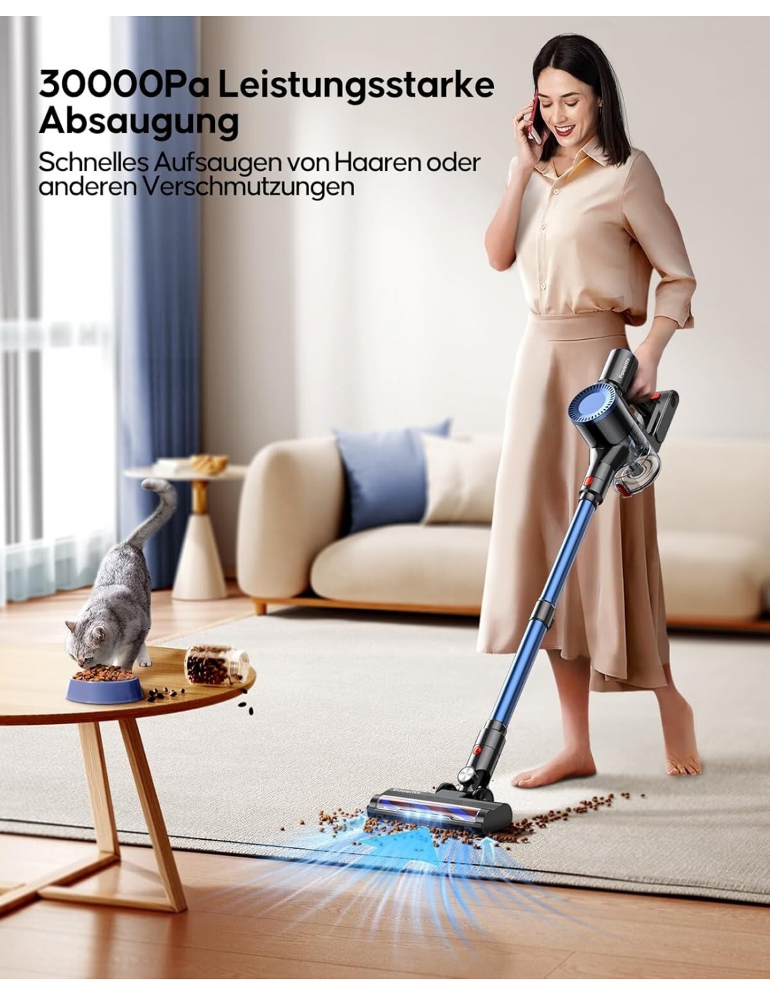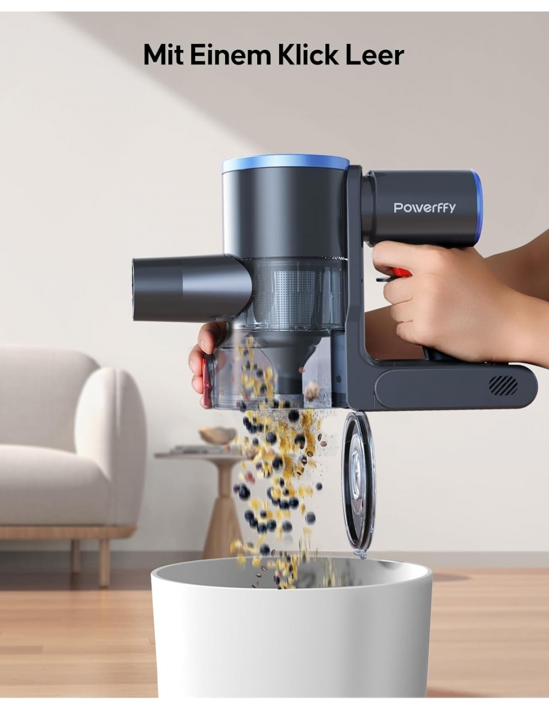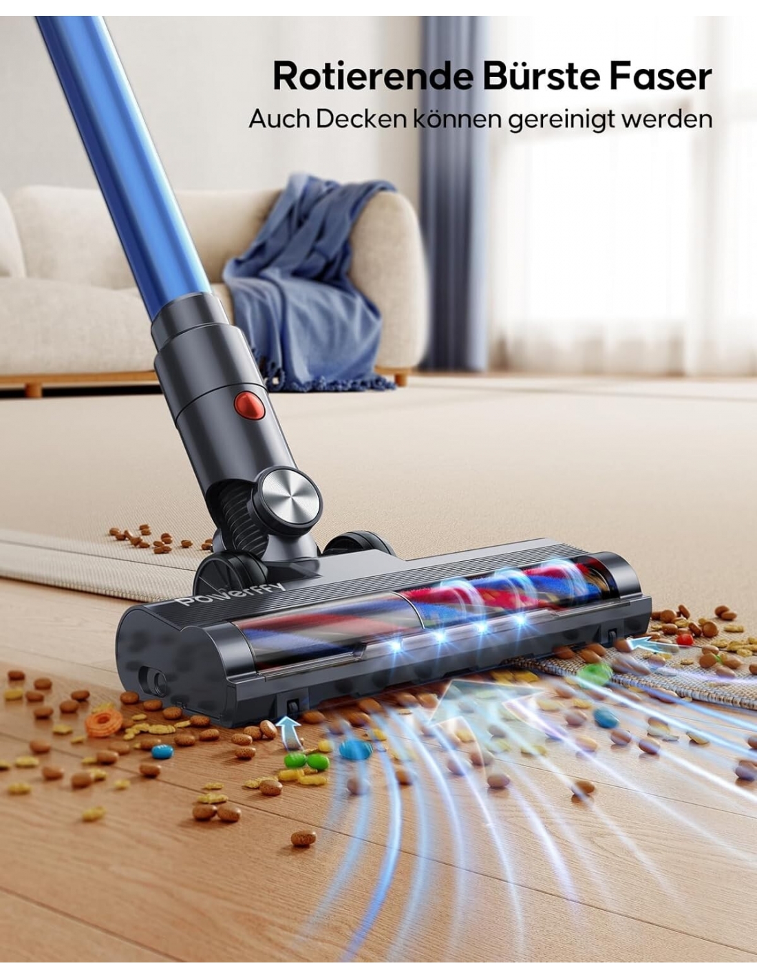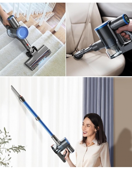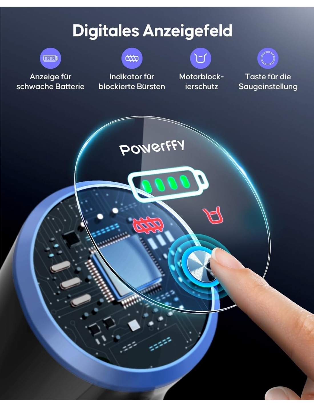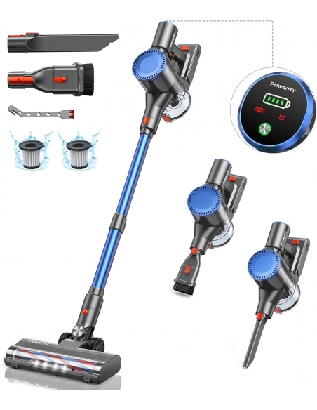 - Questo aspirapolvere senza fili ha un motore senza spazzole da 400 W e un motore ad alte prestazioni da 180.000 giri/min, che fornisce una potenza di aspirazione fino a 30.000 Pa e può gestire facilmente peli di animali domestici, ghiaia, lettiere per gatti e scarti di carta. , polvere, ecc. può sopportare. L'aspirapolvere senza filo Powerffy aumenta significativamente l'efficienza e la comodità delle tue attività di pulizia a casa