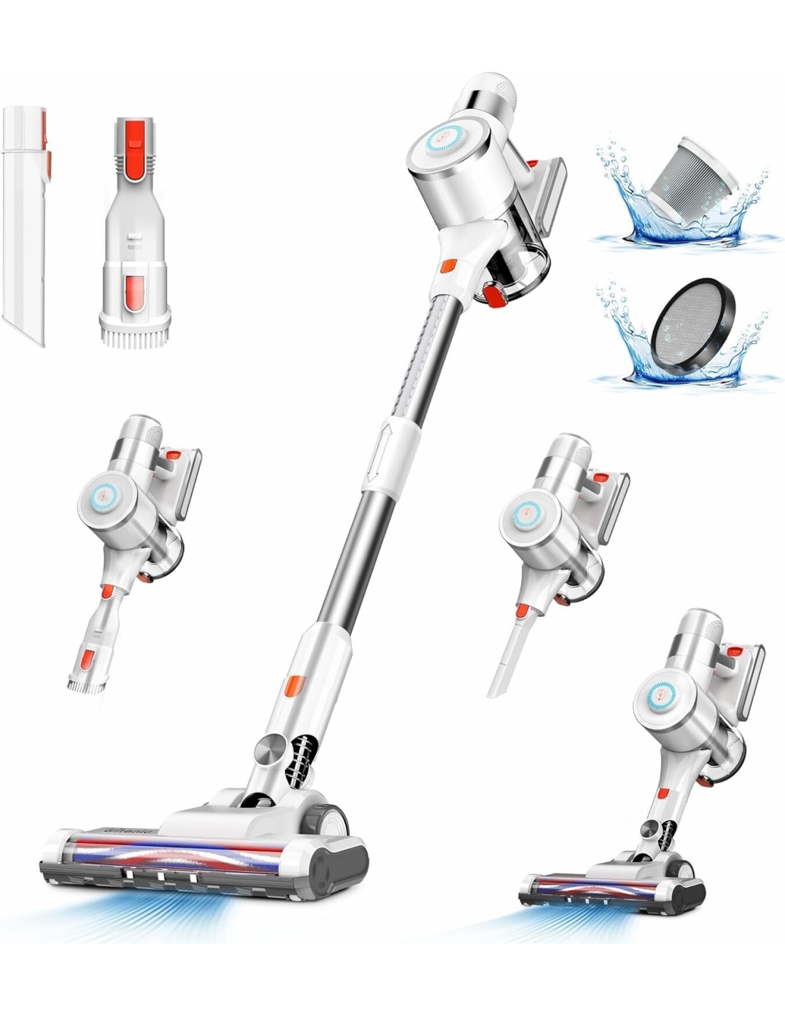 - Motore da 400W: Il motore della scopa elettrica Ultenic U10 Pro offre una potente potenza di aspirazione fino a 30000 Pa in modalità massima, cattura efficacemente i peli degli animali domestici, le briciole di cibo e altri disordini, adatto sia per i pavimenti in legno duro che i tappeti.