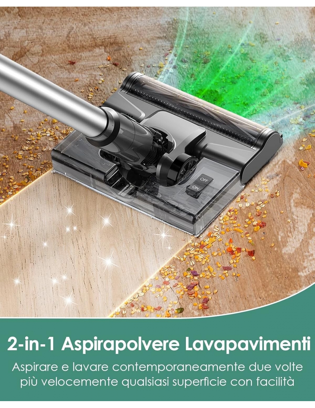 - Maneggevole,Portatile,Luce verde LED,Aspirare e strofinare 2 in 1,Filtro Hepa lavabile