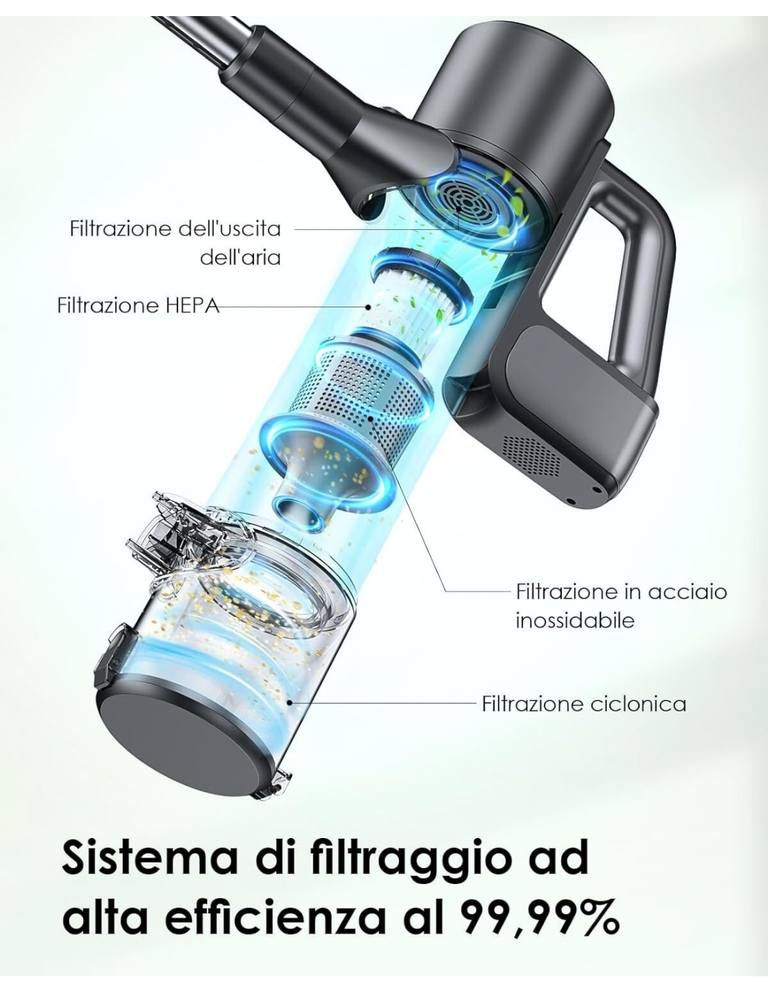 - Animali domestici e bambini possono creare un sacco di confusione in casa, questo potente aspirapolvere senza fili ti aiuta a combattere facilmente la polvere e i peli di animali domestici di tutti i giorni in casa. Motore dalle prestazioni avanzate per fornire la giusta potenza (fino a 40 Kpa) quando necessario, per una pulizia rapida ed efficiente dall'alto verso il basso in un batter d'occhio