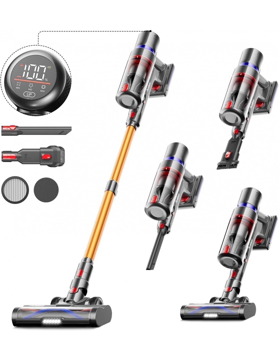 - Avalsor Super X5 Aspirapolvere è dotato di un touch screen OLED intelligente, che consente di regolare facilmente la potenza di aspirazione della aspirapolvere senza fili e di soddisfare in modo più efficace le diverse esigenze di pulizia per i vari tipi di pavimenti. Monitora il livello della batteria in tempo reale e le icone grandi, semplici e ad alta definizione sono perfette per i miopi e le persone di mezza età e anziane.