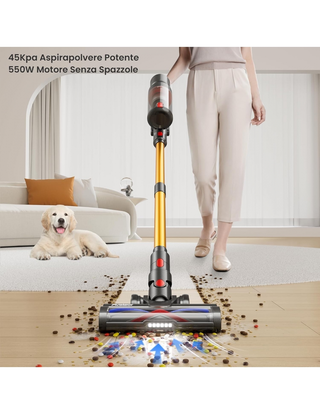 - Avalsor Super X5 è il nuovo aspirapolvere senza fili di 2024 dotato di un motore da 550W (rumore <62dB). L'aspirapolvere è dotato di una super potenza di aspirazione ciclonica di 45 Kpa, in grado di rimuovere facilmente briciole, cibo per cani e macchie ostinate dai pavimenti, peli di animali domestici dai tappeti, nonché polvere e detriti da angoli difficili da rimuovere, luoghi bui, pareti e luoghi alti.