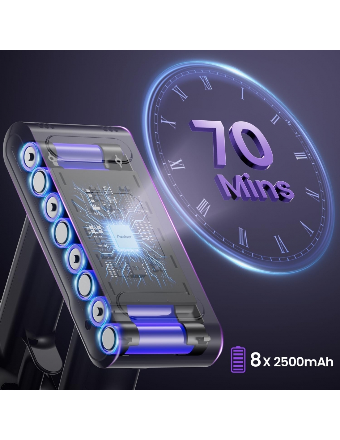 - Avalsor Super X5 Aspirapolvere senza fili potente è dotata di una batteria rimovibile aggiornata da 8*2500 mAh ad altissima capacità che garantisce un funzionamento lungo e stabile e migliora notevolmente la durata. Il tempo di funzionamento autonomo della scopa elettrica senza fili può essere aumentato a 70 minuti con un tempo di ricarica di 4,5 ore. Non è necessario ricaricare frequentemente, la pulizia quotidiana non è più un problema.