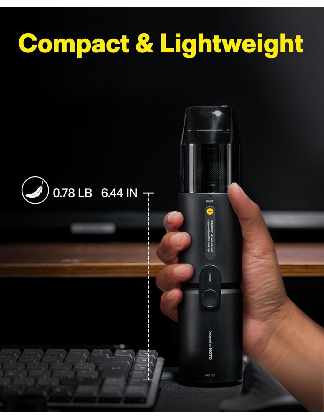 - 【Aspirapolvere da scrivania HOTO senza spazzole】 Dotato di motore brushless, l'aspirapolvere da scrivania HOTO offre una potente aspirazione di 15.000 Pa, in grado di aspirare efficacemente polvere e detriti da scrivanie, computer e fessure dell'auto. La funzione di sigillatura sottovuoto consente di ottimizzare lo spazio di archiviazione e liberare più spazio per altri oggetti.