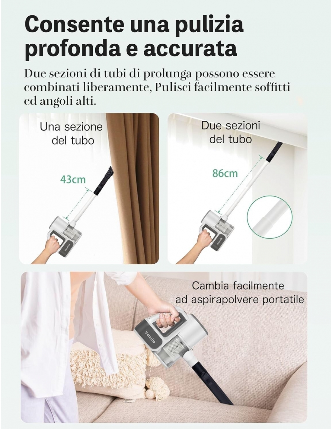 VersLife S6 Aspirapolvere scopa elettrica a batteria ricaricabile 3in1 pavimenti