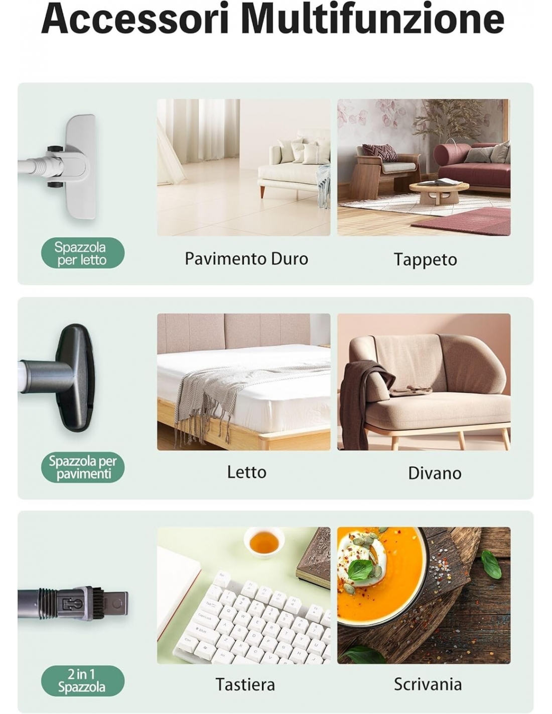 - Dotato di una varietà di accessori come una spazzola a T e una bocchetta per fessure. La spazzola a T è perfetta per superfici irregolari o in tessuto, mentre la bocchetta per fessure è progettata per angoli, fessure e altre aree difficili da raggiungere. Il tubo flessibile staccabile consente di passare facilmente a un aspirapolvere portatile.