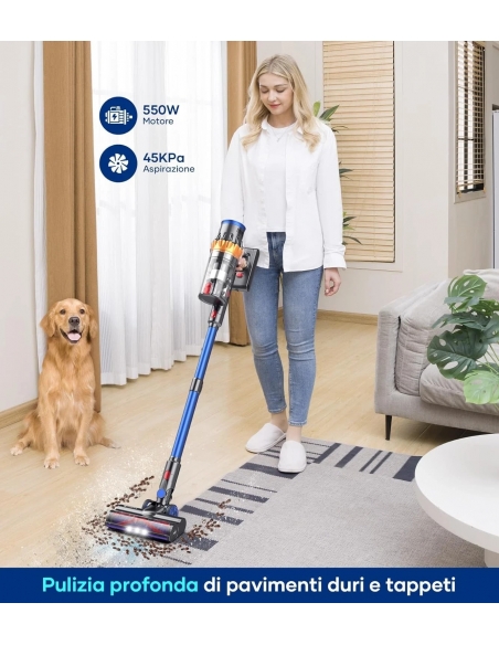 MIBODE V28 Aspirapolvere Senza Fili, 45Kpa&550W&65Mins Scopa Elettrica Senza Fili