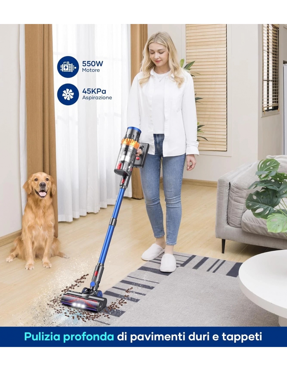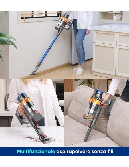 【45 Kpa forte aspirazione & 550W senza spazzole Motore】2024 MIBODE V28 Aspirapolvere Senza Fili dotato di un motore senza spazzole aggiornato da 550W, offre una potenza di aspirazione ciclonica senza precedenti di 45 Kpa, che migliora notevolmente l'efficienza del lavoro. Facile da pulire peli di animali domestici e sporcizia da pavimenti e tappeti. Rumore <68 dB per una pulizia silenziosa ed efficiente che lascerà la vostra casa come nuova.
