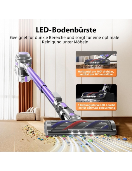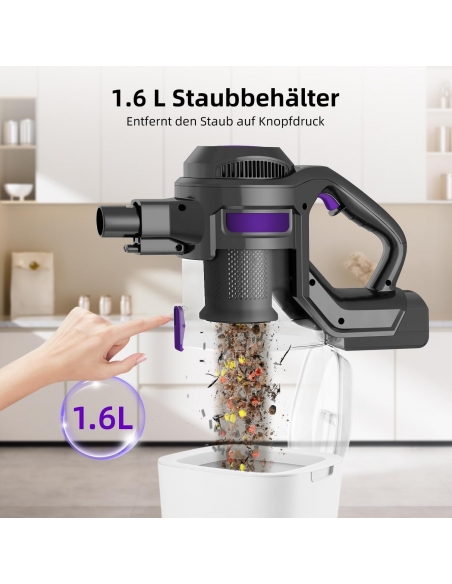 - Il potente motore dell'aspirapolvere senza fili garantisce un flusso d'aria potente e duraturo con una potenza di aspirazione fino a 40 Kpa, in modo che sporco, briciole, peli di animali e polvere possano essere rimossi a fondo e senza residui dopo l'aspirazione. Sono disponibili due modalità di aspirazione: la modalità standard a risparmio energetico dura 40-50 minuti, la modalità ad alta potenza 20-30 minuti. Soddisfa senza sforzo le tue esigenze di pulizia quotidiane.