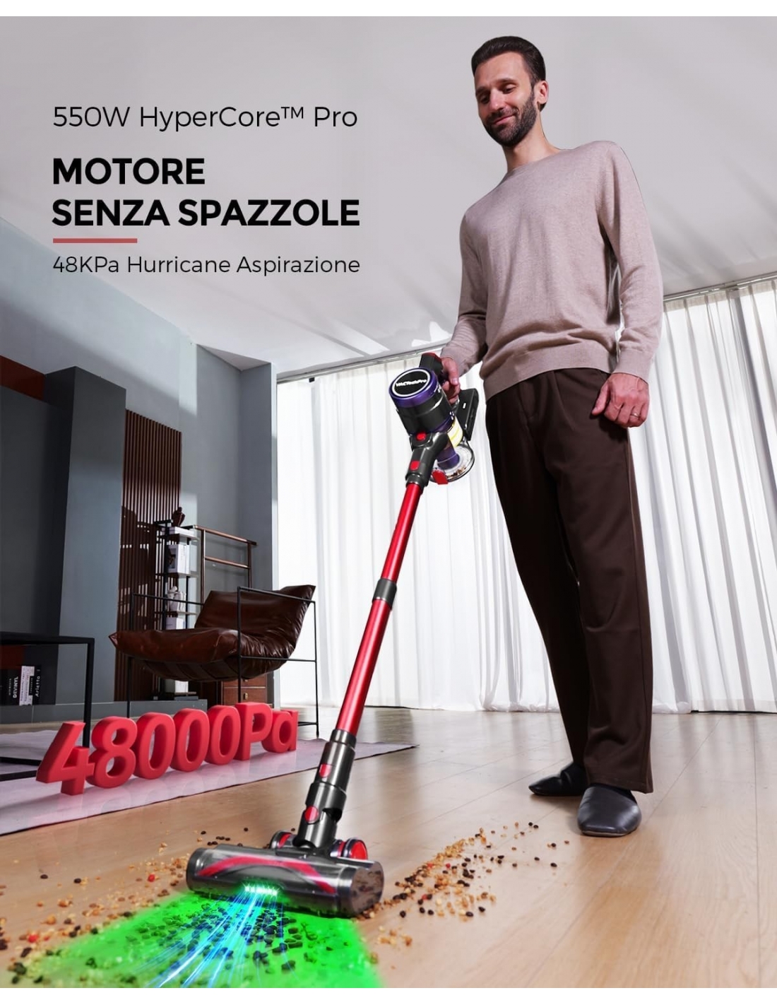 VACTechPro V15Ultra 48000Pa/550W/70Min Aspirapolvere Senza Fili