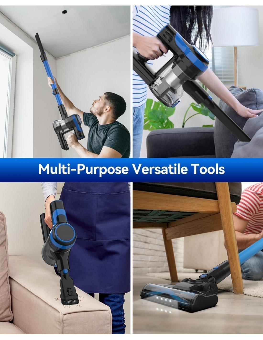 - 【Ultraleggero Aspirapolvere】Questo aspirapolvere leggero pesa solo 3kg, il che lo rende ideale per la pulizia con una sola mano. Inoltre, è autoportante e può essere posizionato ovunque si desideri. L'assenza di cavi rende questo aspirapolvere senza fili molto comodo da trasportare da una stanza all'altra e funziona perfettamente su pavimenti duri, piastrelle, pavimenti in legno, moquette e tappetini.
