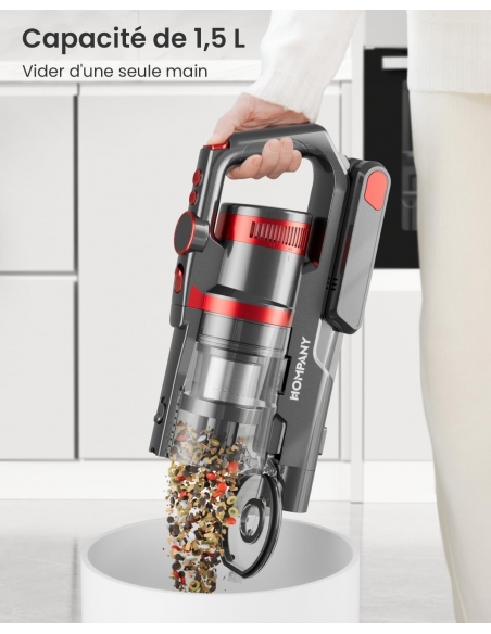 Contenitore della polvere da 1,5 L: è dotato di un ampio contenitore della polvere da 1,5 L che puoi svuotare con una mano stando in piedi.