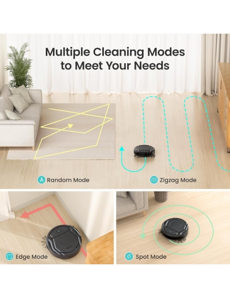 - Il robot aspirapolvere può passare in modo flessibile tra diverse modalità tramite l'APP: ➊Pulizia organizzata➋Pulizia casuale➌Pulizia spot➍Pulizia lungo il muro➎Pianificare la pulizia➏Pulizia manuale.