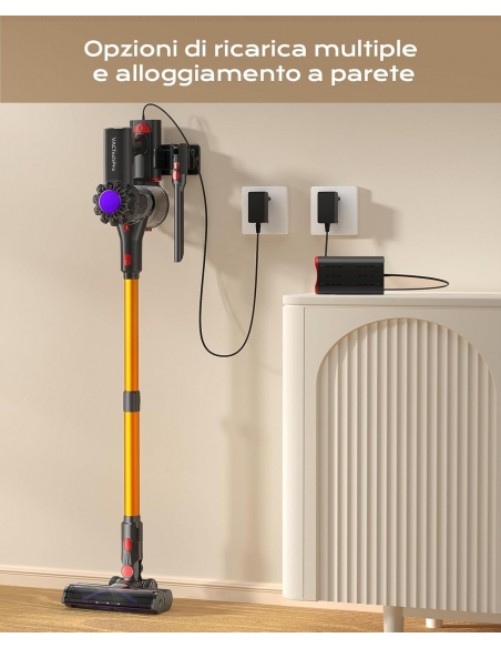 - 【Fino a 35 minuti di autonomia e batteria rimovibile】Con una batteria ricaricabile ad alta capacità, l'aspirapolvere senza fili offre eccezionali prestazioni di pulizia fino a 35 minuti (Modalità ECO per 35 minuti, MAX per 18 minuti), garantendo una pulizia completa in tutta la casa. La batteria rimovibile può essere caricata singolarmente o direttamente sull'unità principale