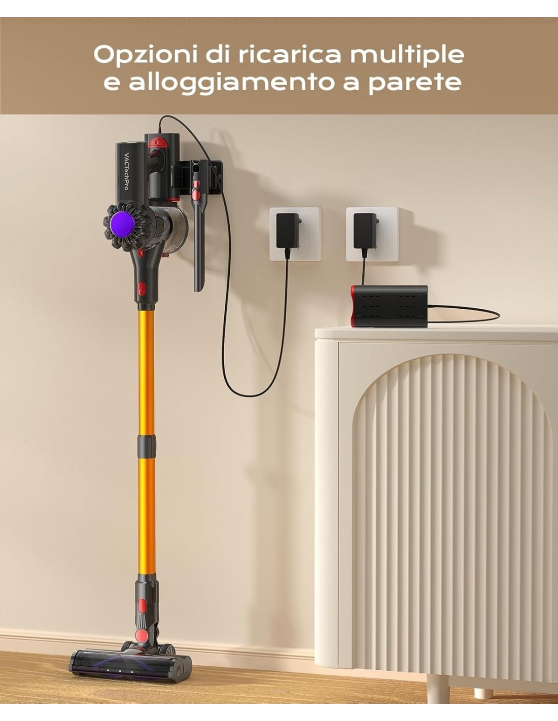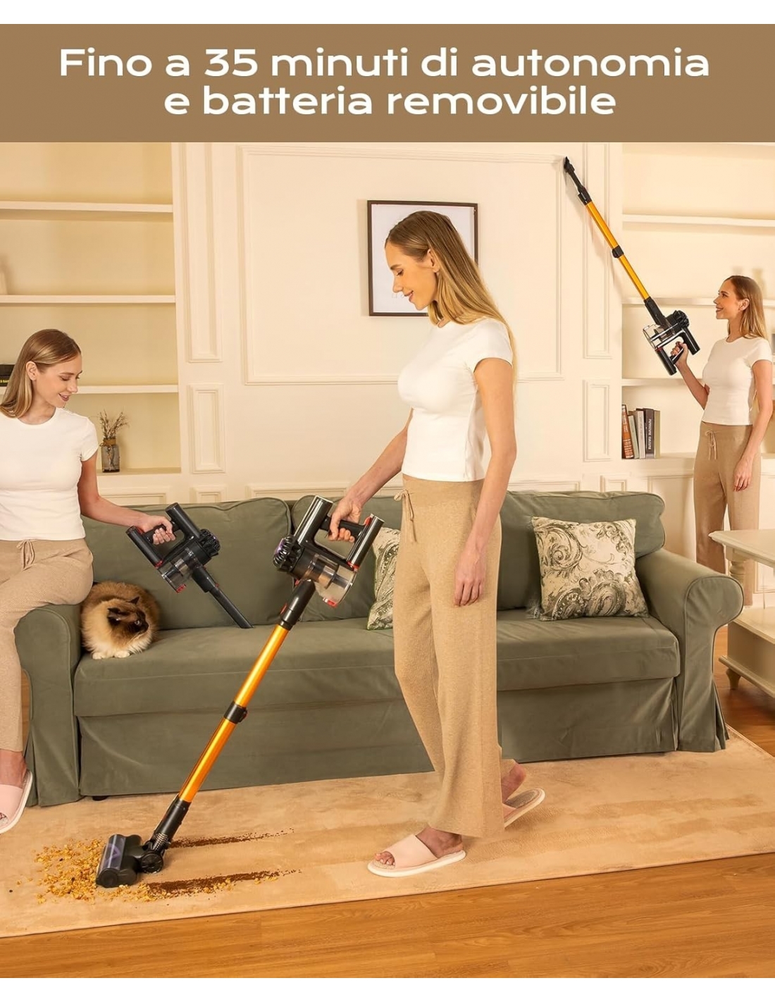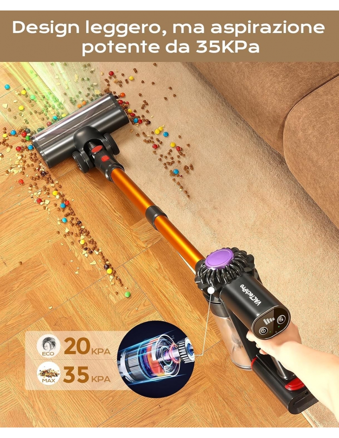 VACTechPro V15 Aspirapolvere Senza Fili 6 in 1 con Potente Aspirazione da 35KPa e Batteria Rimovibile - 35 Minuti di Autonomia per Tutti i Tipi di Pavimenti