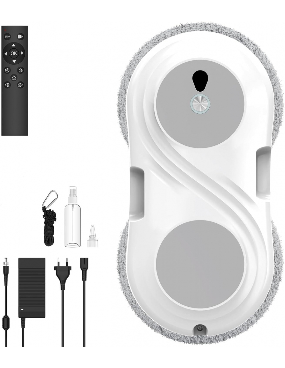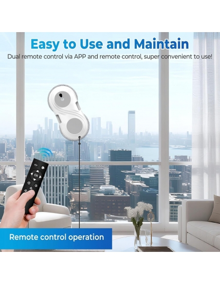 - 🎛️ Telecomando – Questo robot limpieza de ventanas è dotato di un telecomando intelligente. Basta premere un pulsante e il robot risponderà con precisione, completando le operazioni di pulizia sia sulle superfici più alte che negli angoli più difficili da raggiungere. Con un livello di rumorosità minimo di 65 decibel, offre una pulizia silenziosa anche in ambienti silenziosi, garantendo una pulizia efficiente.