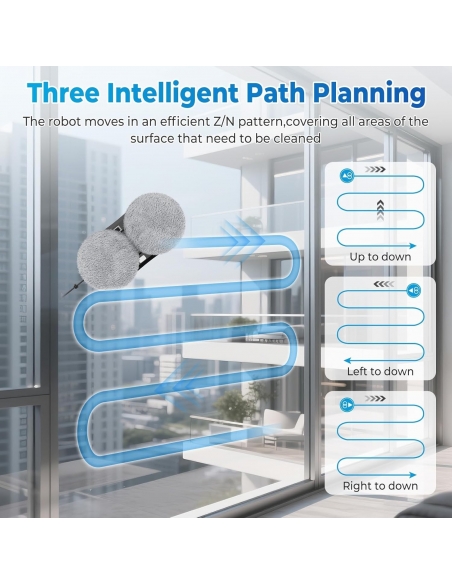 - 💨 Robot Lavavetri con Potente Aspirazione da 8000 Pa – Questo robot lavavetri pulisci vetri rileva automaticamente il livello di sporco e regola la potenza di aspirazione per una pulizia efficace e sicura. Ideale per vetri, piastrelle, porte in legno e tutte le superfici lisce.
