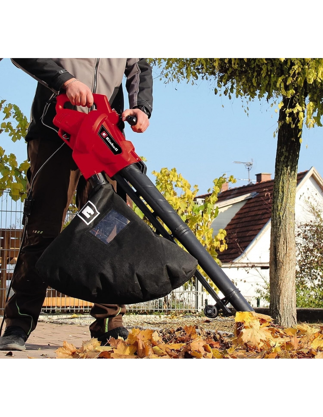 - Attrezzo 2 in 1: il potente aspiratore può funzionare anche come soffiatore per foglie. Questa funzione può essere selezionata facilmente e senza attrezzi tramite un interruttore.