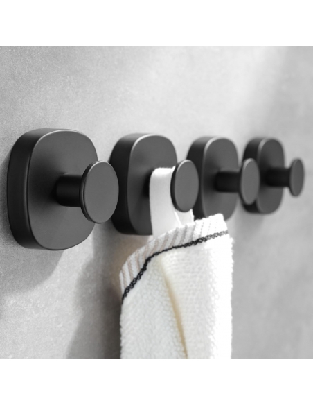 - Ganci per asciugamano in acciaio inox: Come materiale per i ganci è stato scelto l'acciaio inox di alta qualità, bello e semplice, con prestazioni impermeabili. Non è facile che si arrugginisca, anche se esposto per lungo tempo al bagno umido, il che garantisce che gli appendiabiti siano duraturi e resistenti.