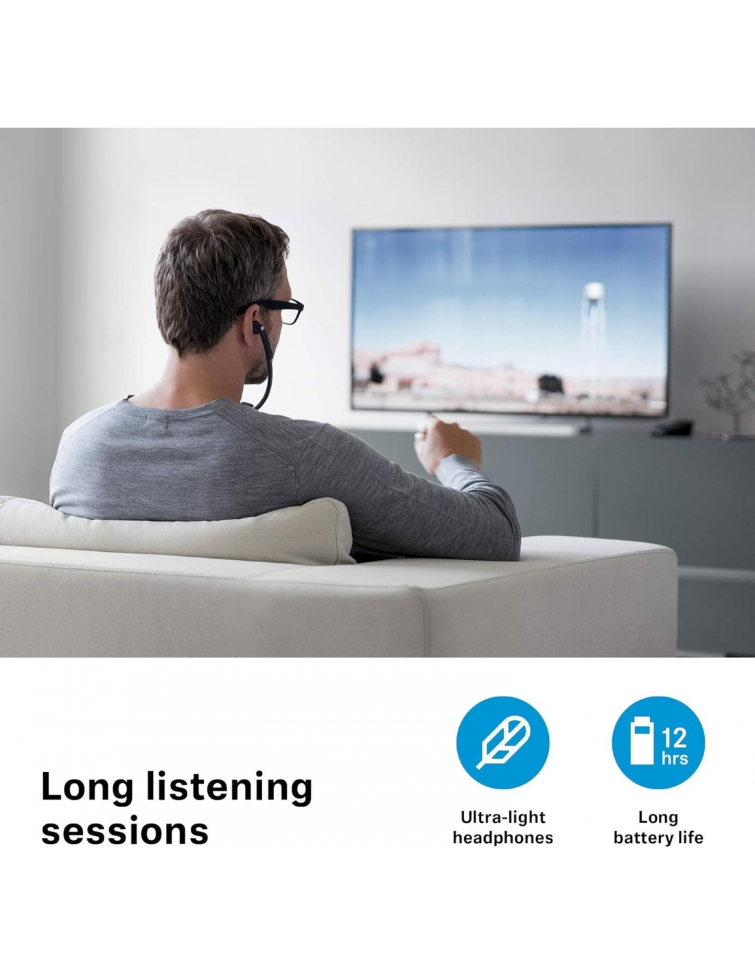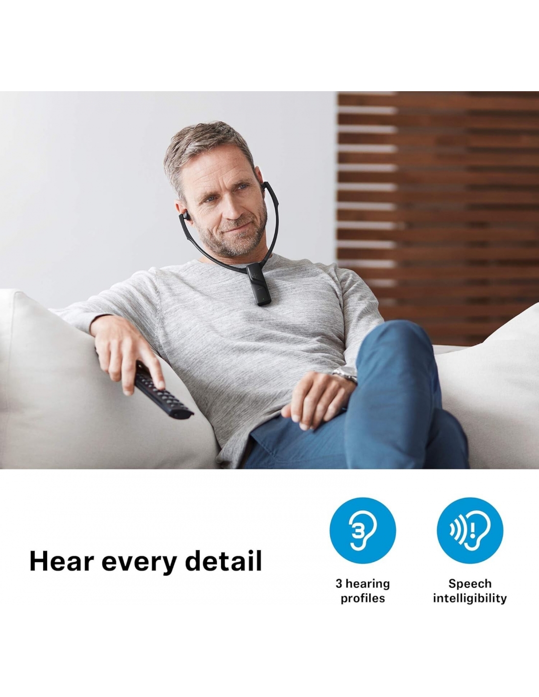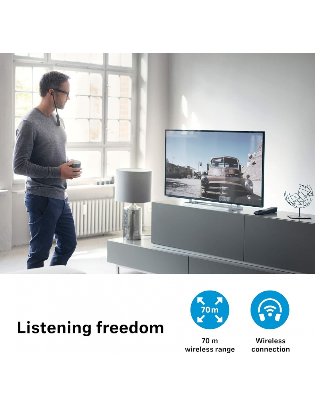 RS 5000 è un dispositivo d’ascolto intelligente dal design elegante. Offre un’esperienza audio TV personalizzata per soddisfare le richieste e le esigenze personali di ciascuno. Mette a disposizione tre possibili profili d’ascolto per ottimizzare l’ascolto di TV, musica e film. La pressione di un tasto permette di attivare la funzione di Speech Intelligibility che aumenta la chiarezza del parlato. La tecnologia wireless digitale avanzata offre un suono cristallino. I controlli intuitivi garantiscono un semplice utilizzo. La grande durata della batteria e l’indossabilità confortevole garantiscono un'esperienza audio piacevole anche per lunghe sessioni di ascolto.