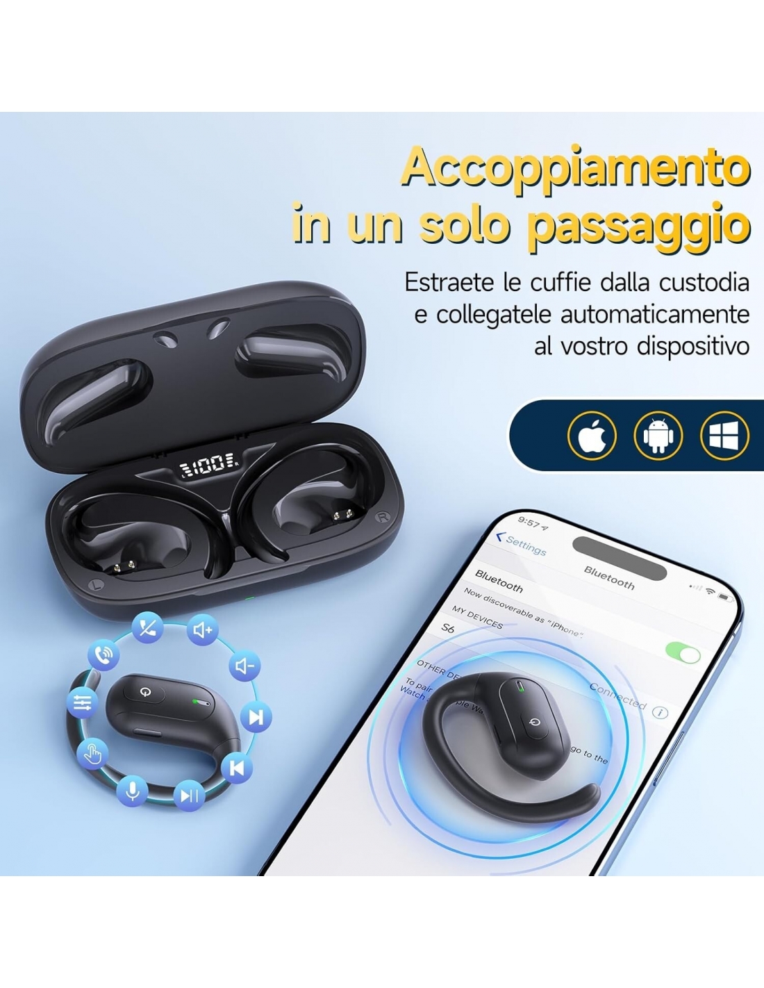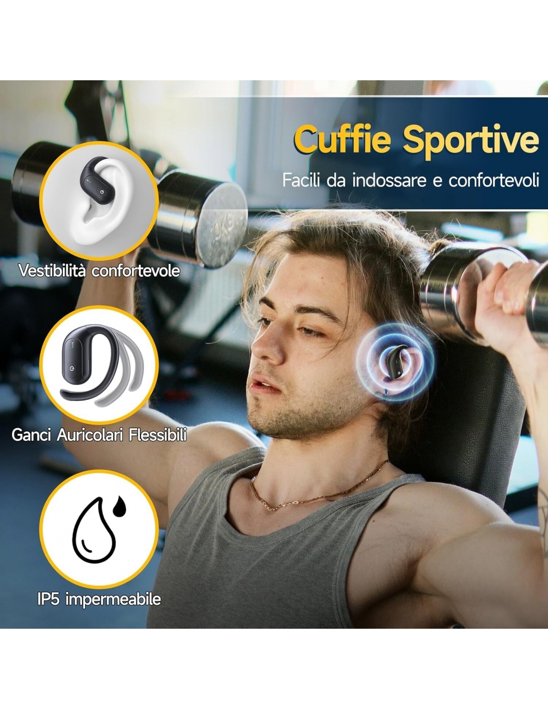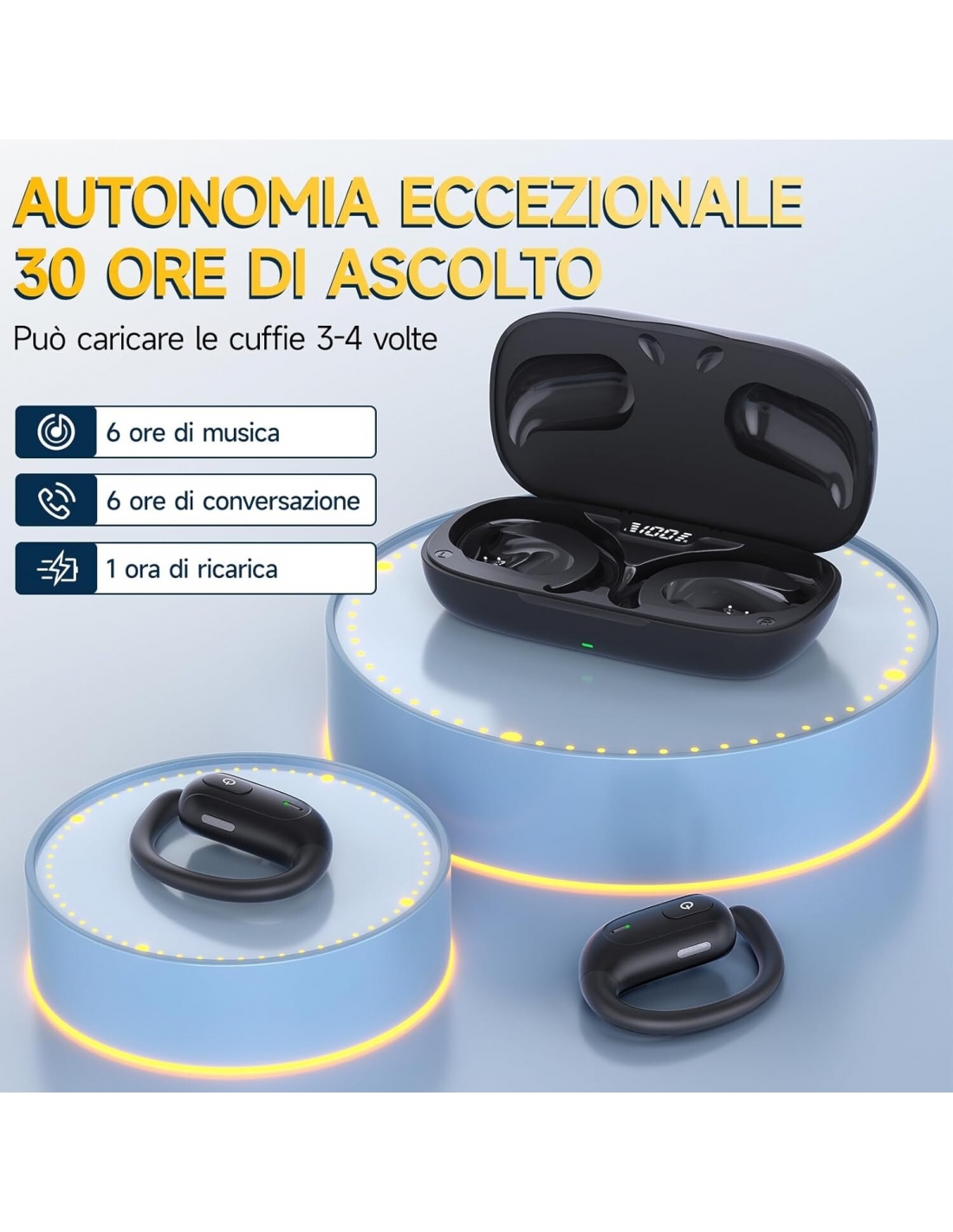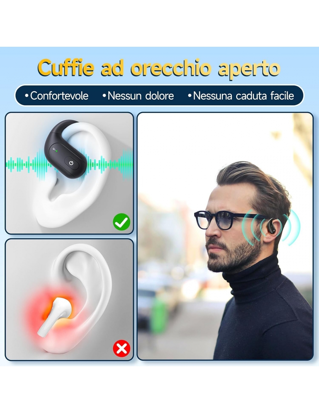 - Gli auricolari sportivi Bluetooth con design open ear sono progettati per offrire comfort e sicurezza, offrendo una vestibilità traspirante e aperta. Dalle videochiamate all'ascolto della tua musica preferita, gli auricolari a clip sono versatili e si adattano a molteplici scenari.