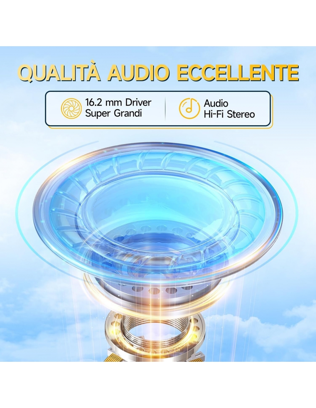 - Gli auricolari offrono un'esperienza audio stereo HiFi eccezionale. Grazie ai driver dinamici di alta qualità, puoi immergerti nella tua musica preferita con un audio chiaro e bilanciato. Dotate di tecnologia di cancellazione del rumore ambientale (ENC), le cuffie sportive Bluetooth garantiscono chiamate chiare e senza interferenze. Che tu sia in un ambiente rumoroso o durante una videochiamata importante, le tue conversazioni saranno sempre nitide e prive di rumore.