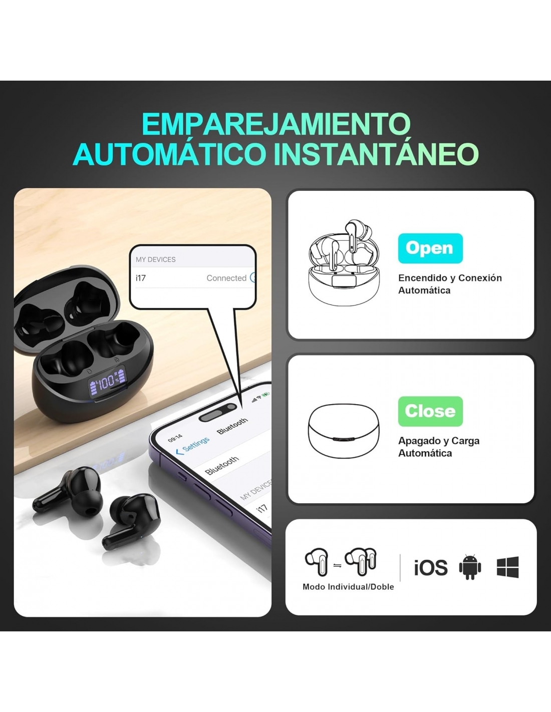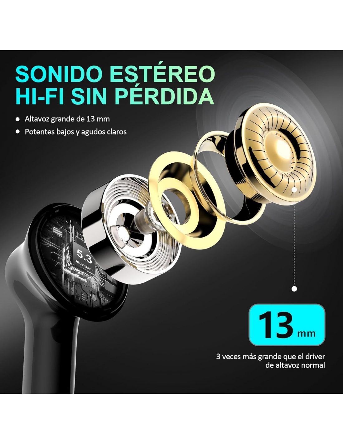 - Connessione Bluetooth 5.3 stabile e associazione automatica: grazie alla più recente tecnologia Bluetooth 5.3, gli auricolari wireless garantiscono una connessione stabile, una trasmissione veloce e un'ampia portata (fino a 15 metri). Basta aprire la custodia di ricarica, estrarre gli auricolari e si sincronizzeranno immediatamente con il dispositivo.