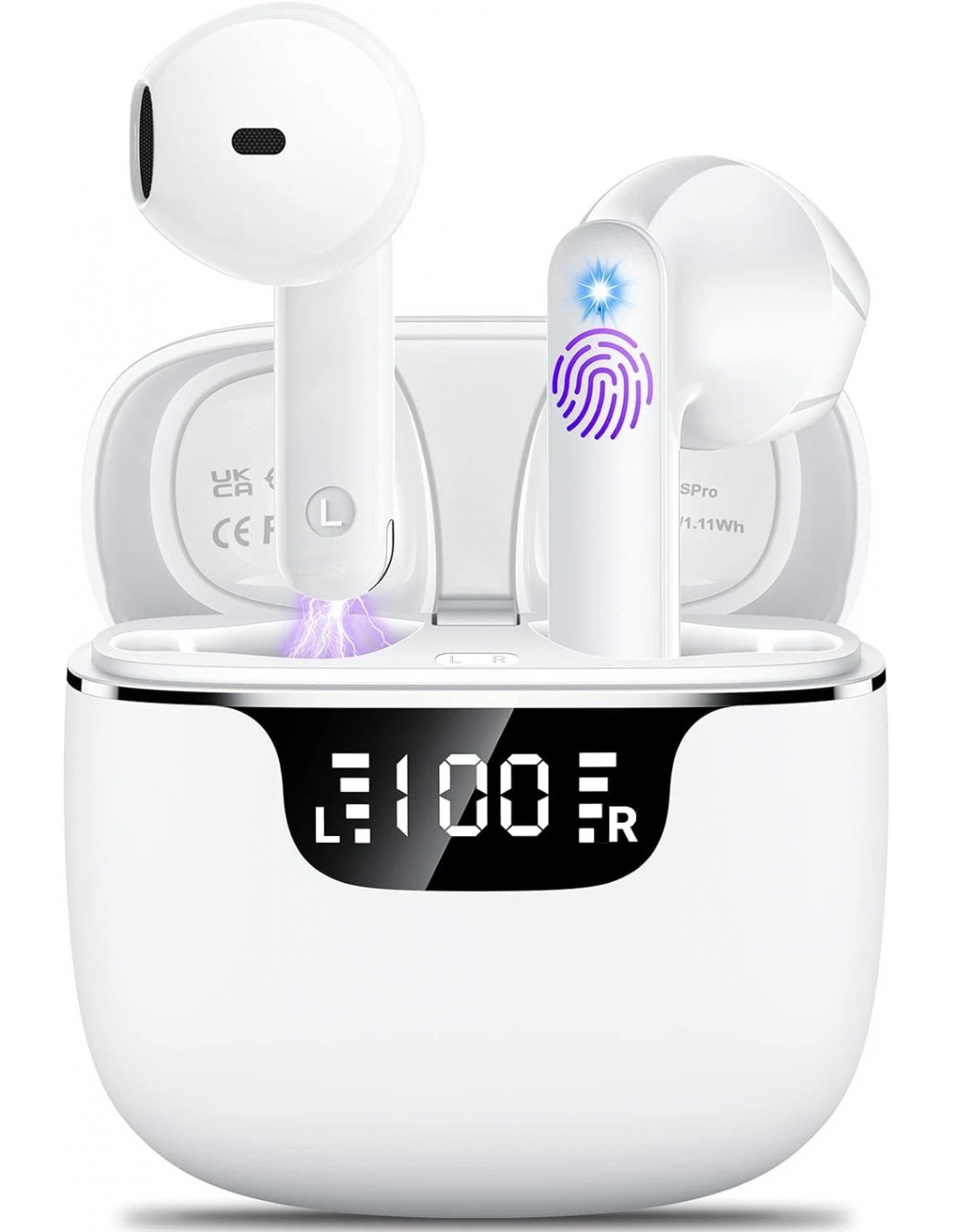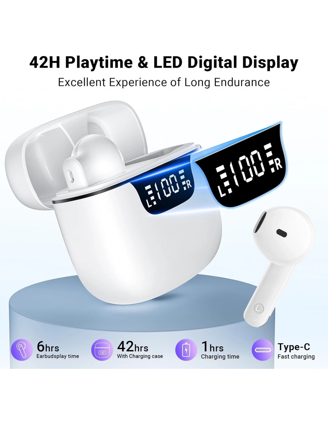 Accoppiamento in un solo passaggio e tempo di riproduzione di 42 ore】 Auricolari senza fili Bluetooth con un solo passaggio di accoppiamento. Dopo la prima connessione, basta aprire la custodia di ricarica ed estrarre gli auricolari, le cuffie wireless si collegheranno automaticamente al dispositivo. Le cuffie wireless bluetooth con display a LED durano fino a 6-8 ore con una singola carica e sono dotate di un'autonomia di 42 ore.