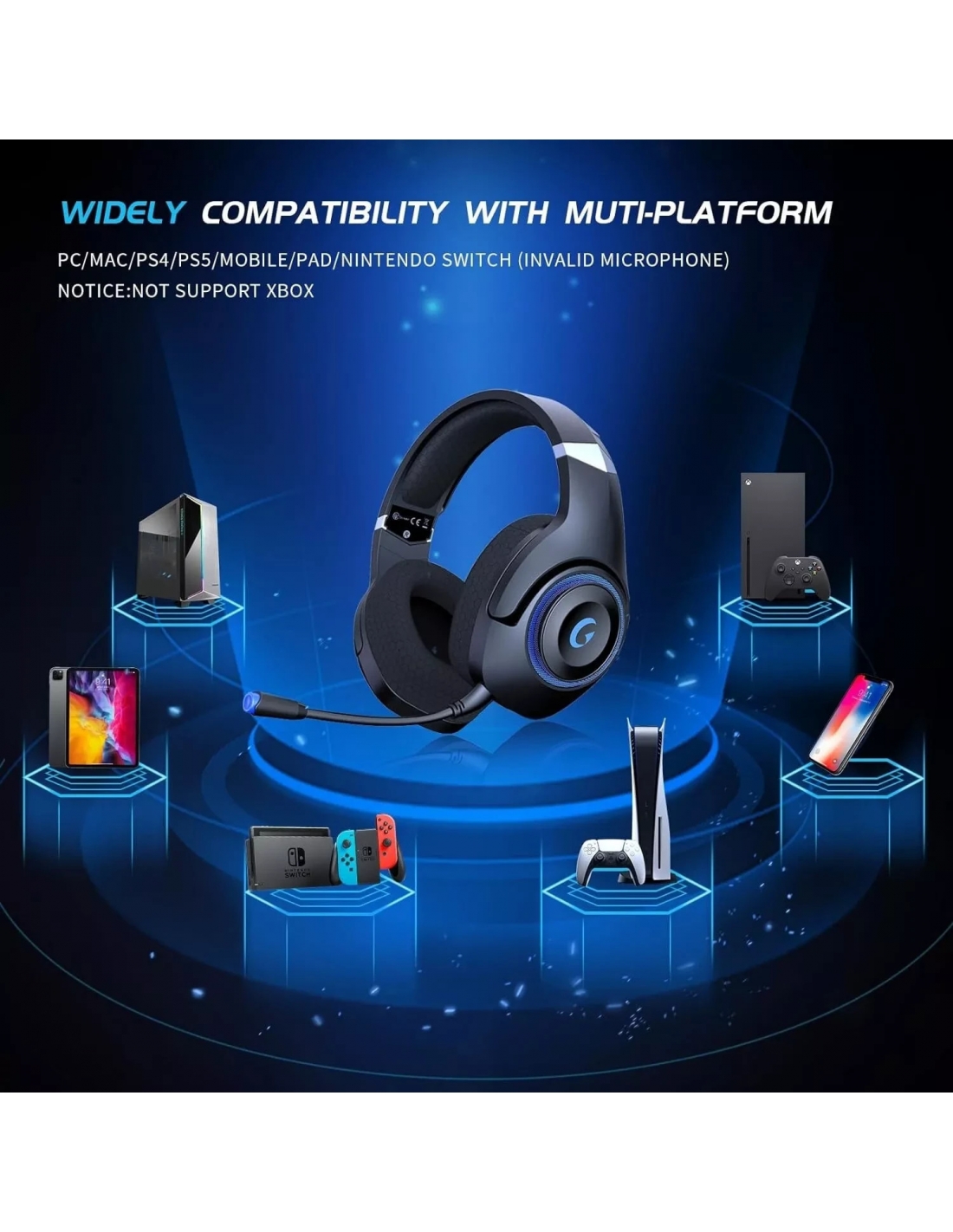 - 【Tre modalità di connessione per cuffie】 le cuffie gaming wireless con microfono possono essere collegate tramite il ricevitore da 2,4 GHz con PC, switch, ps4 e ps5. Con un doppio clic sull'interruttore di alimentazione, può essere convertita in cuffie da gioco Bluetooth, compatibili con telefoni, tablet e altri dispositivi mobili. Con il cavo audio da 3,5 mm, è possibile giocare alla serie Xbox con queste cuffie da gioco. (In modalità cablata il dispositivo deve essere spento)