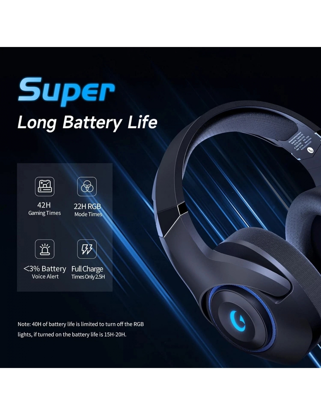 - 【Durata della batteria di 40 ore】 Con queste cuffie PS5 wireless con microfono è possibile giocare fino a 40 ore senza dover caricare la batteria. Le cuffie PS4 hanno una durata della batteria di 25 ore quando la luce RGB è spenta. Se la carica della batteria scende al di sotto del 3%, verrà emesso un allarme vocale. La ricarica delle cuffie richiede solo 2,5 ore per essere completamente carica.