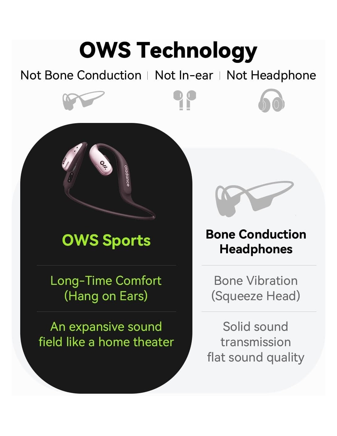 - Design a orecchio aperto e comfort epico: le cuffie sportive Oladance Open Wearable Stereo (OWS) vantano un caratteristico design aperto che le distingue dalle cuffie tradizionali. A differenza delle cuffie in-ear o a conduzione ossea, OWS Sports culla comodamente le orecchie. Il nostro design brevettato garantisce una vestibilità superiore, consentendo di godere di un uso prolungato senza compromettere il comfort.