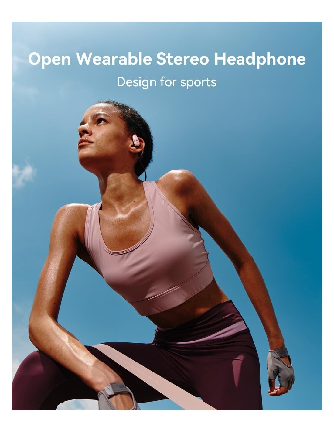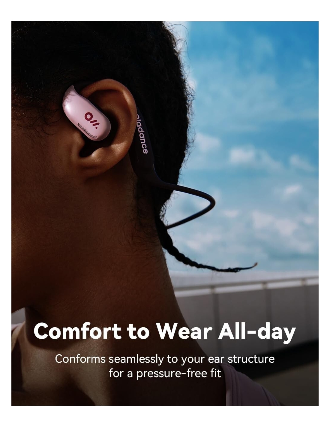 Oladance OWS Sports Open-Ear Headphone, 15 Hours Open Wearable Stereo Bluetooth Earphones IPX8 Waterproof for Running Cycling Workout Gym, Wireless Bluetooth 5.1 Compatible iPhone and Android Pink.