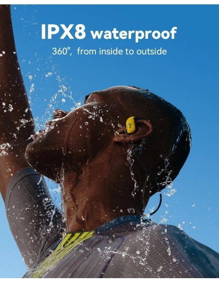 - Impermeabile IPX8: le cuffie sportive wireless OWS hanno uno squisito design impermeabile con robusto acciaio e rete in garza. Completamente resistenti al sudore e impermeabili, queste cuffie sono realizzate per resistere a tutte le condizioni atmosferiche durante la routine di allenamento. Pulisci le macchie senza sforzo con un risciacquo diretto con acqua dopo la sessione di allenamento.