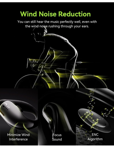 - Deflettore d'aria e conversazione cristallina: dotato di struttura del condotto del vento e doppi microfoni per una precisa acquisizione del suono e algoritmo di riduzione del rumore, elimina il rumore ambientale durante le chiamate. Anche a una velocità del vento di 2-3 m/s, ogni parola che pronunci può essere trasmessa chiaramente alle orecchie del chiamante, garantendo conversazioni cristalline.