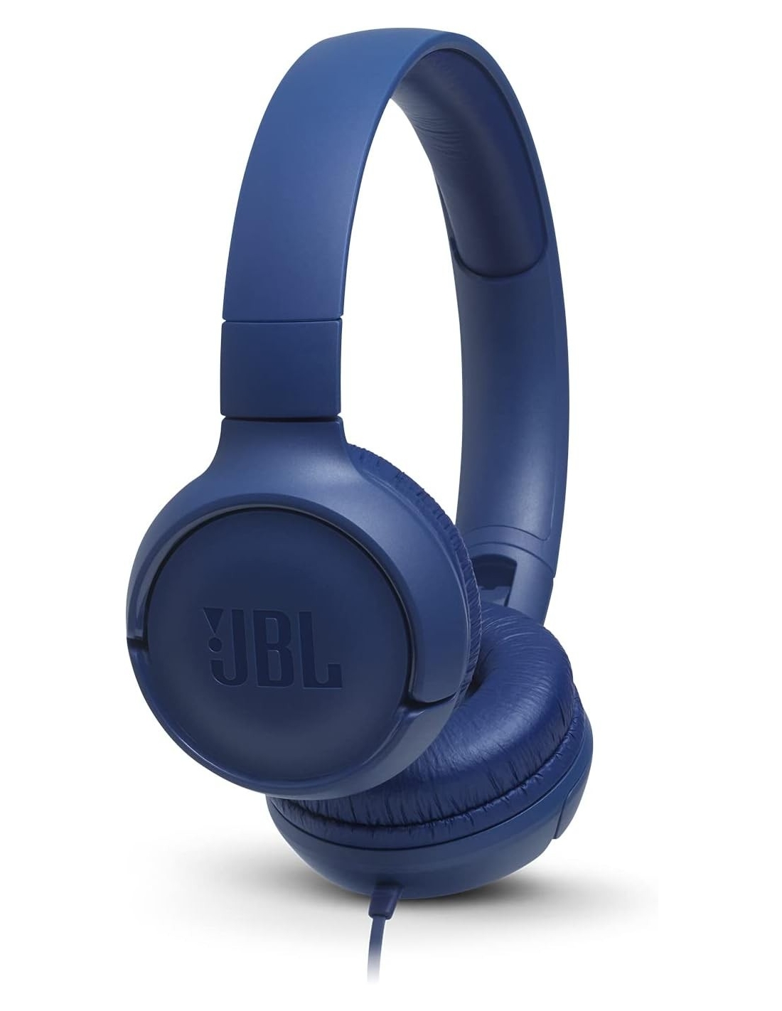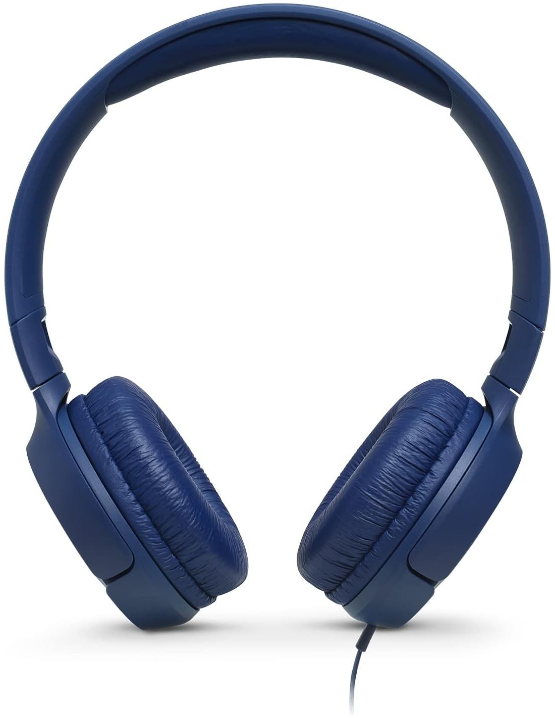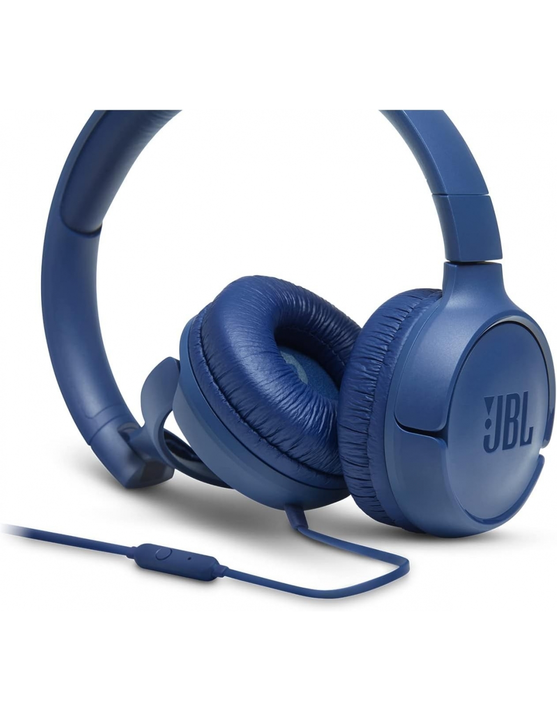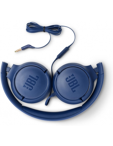 JBL Tune 500 Cuffie Sovraurali On Ear Microfono e Comando Remoto 1 Pulsante JBL Pure Bass Sound Compatibile con Siri e Google Leggere e Pieghevoli Da Viaggio Blu