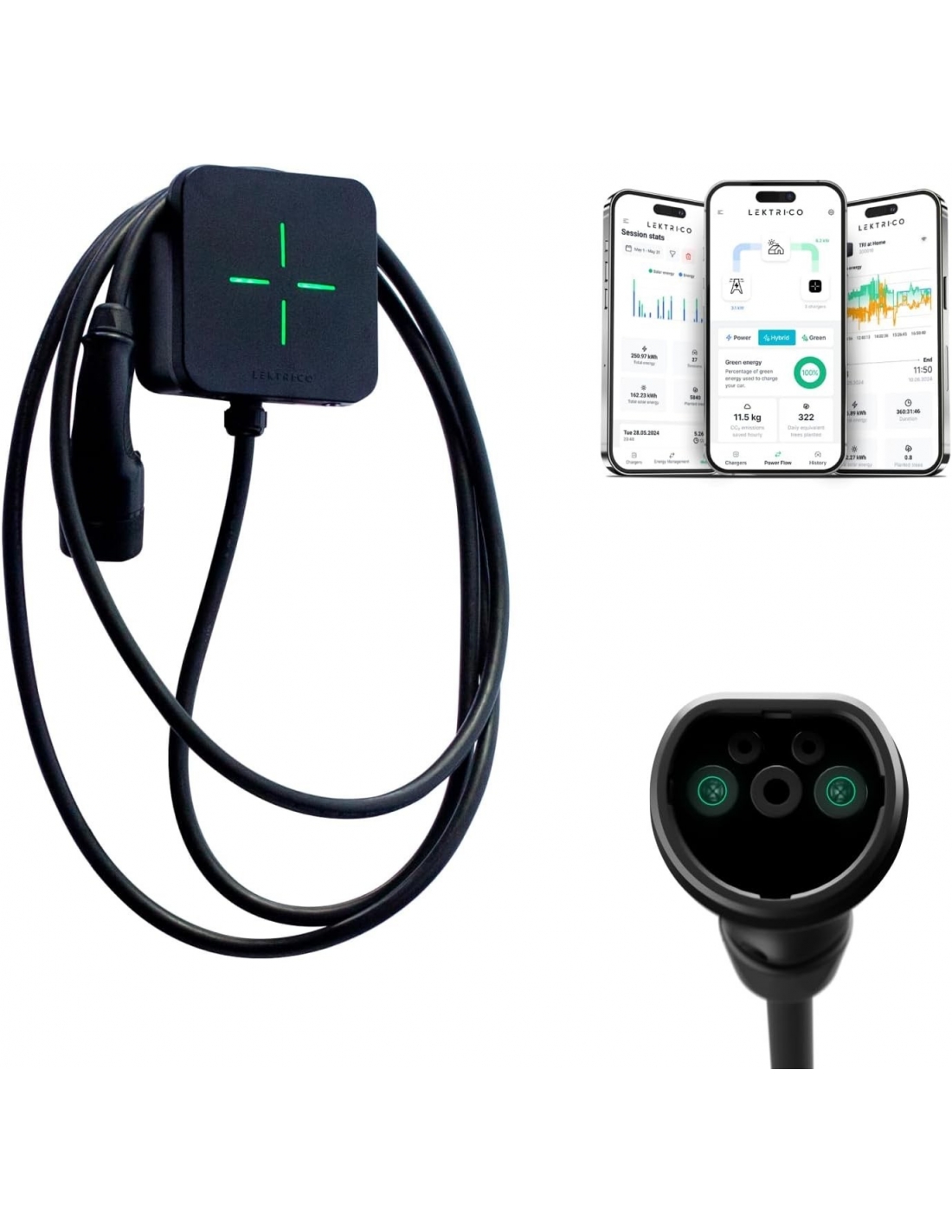 LEKTRICO 3PZ2K-STD-T2S One 6 A-32 A Safe Wi-FI, cavo 5 m tipo 2 con otturatore,, 7,4 KW, app mobile, interno/esterno, protezione differenziale (RCM), IP55, IK10, nero.